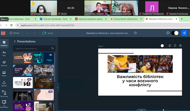Секретами та лайфхаками створення презентацій за допомогою штучного інтелекту з використанням інструментів платформи «Wepik» поділилася Наталя Шепелєва, PhD (соціальна робота), завідувачка сектору інноватики та професійного розвитку відділу науково-методичної роботи ХДНБ імені В. Г. Короленка.