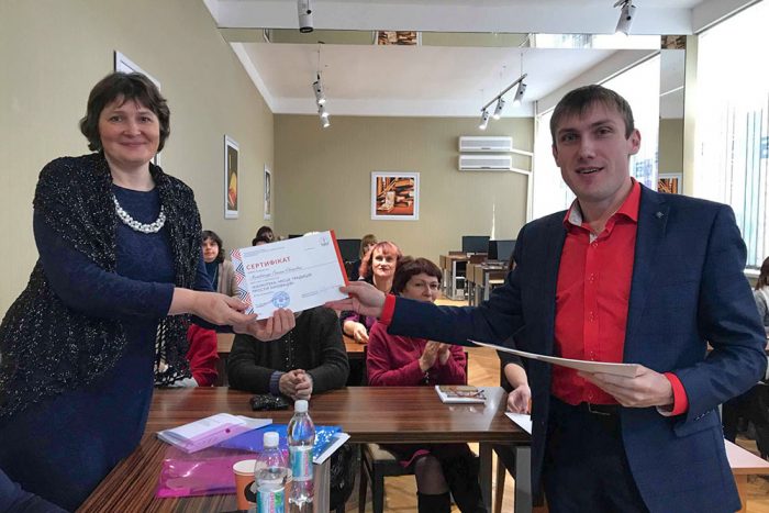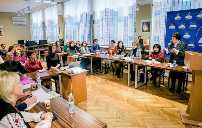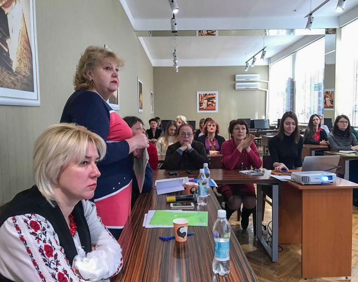 Оксана Євгенівна Матвійчук, кандидат педагогічних наук, доцент Інституту післядипломної педагогічної освіти Київського університету імені Бориса Грінченка ознайомила присутніх з проектом «Лідер бібліотечної справи», спрямованим на піднесення іміджу бібліотечної професії та багатогранність пов’язаних з нею можливостей.