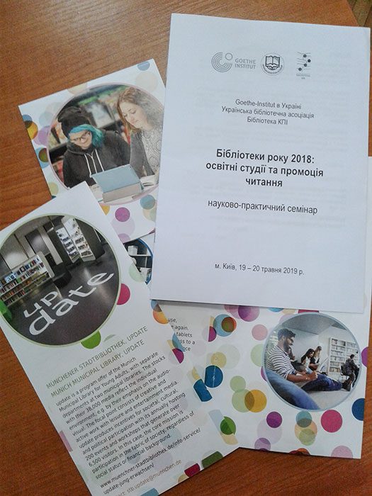 19–20 травня 2019 р. в м. Києві відбувся міжнародний науково-практичний семінар «Бібліотеки року 2018: освітні студії та промоція читання», організований Українською бібліотечною асоціацією та Goethe-Institut в Україні. Наукову бібліотеку Київського національного університету культури і мистецтв представляли завідувач науково-методичного відділу С. Г. Винокурова та провідний бібліотекар О. Ф. Омельяненко-Набіуліна.