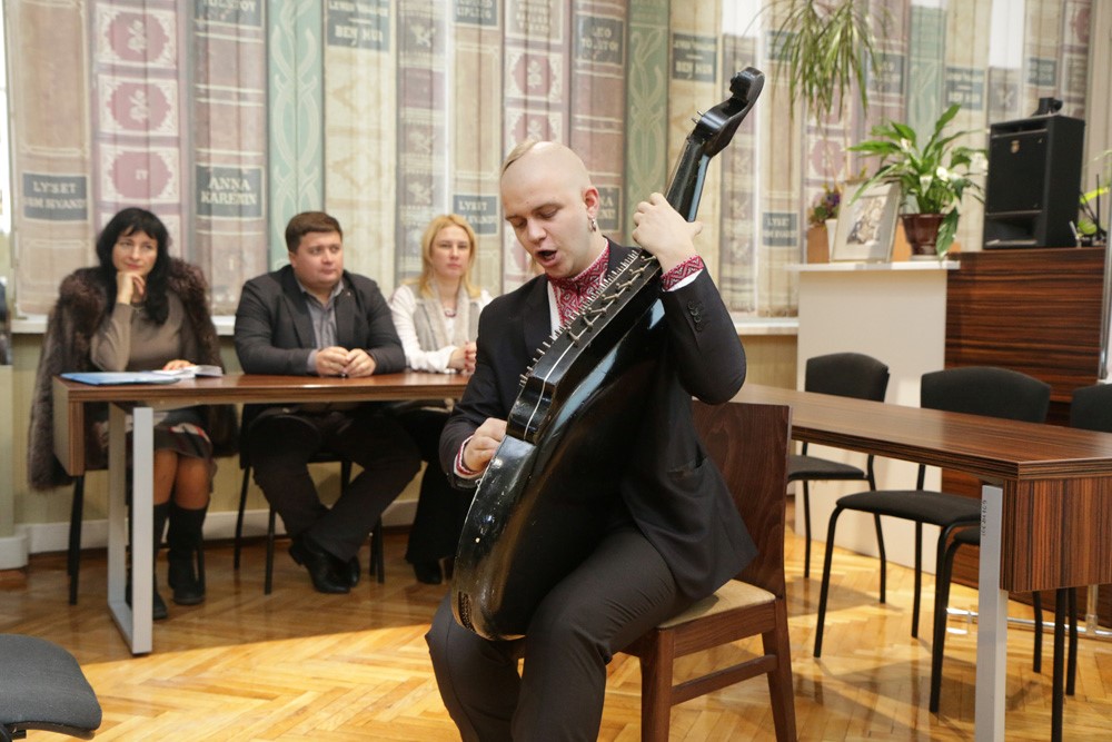 На початку культурного заходу студент-бандурист Євген Пихтін виконав відомі українські музичні композиції «Гей, вдарте в струни, кобзарі» та «Ішов кобзар чистим полем», а чоловічий склад фольклорного ансамблю «Кралиця» заспівав повстанську пісню «Хлопці, підемо, боротися будемо».