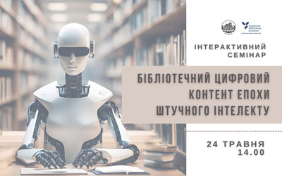 24 травня в онлайн форматі відбувся інтерактивний семінар «Бібліотечний цифровий контент епохи штучного інтелекту», ініційований і проведений Харківською державною науковою бібліотекою імені В. Короленка та Харківським...