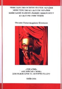 Білецька О. О. Theatre. Англійська мова для режисерів та акторів театру : навч. посіб. для студентів вищ. навч. закладів / О. О. Білецька. – Київ : Вид. центр КНУКіМ, 2016. – 331 с.