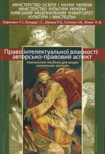 Право інтелектуальної власності: авторсько-правовий аспект: навч. посіб. для вищ. навч. закл. / Т. І. Биркович, І. С. Бондар, Р. Б. Шишка, І. М. Сопілко, Н. В. Філик та ін.; М-во освіти і науки України, М-во культури України, Київ. нац. ун-т культури і мистецтв. – Київ: Вид. центр КНУКіМ, 2015. – 280 с.
