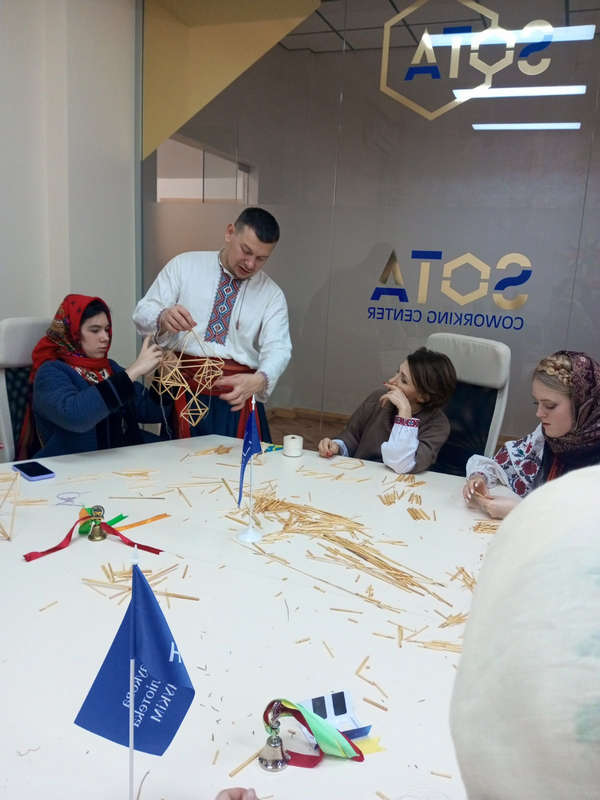 19 грудня у просторі для творчості SOTA Наукової бібліотеки КНУКіМ пройшов майстер-клас зі створення автентичних українських символів Різдва – Дідуха та солом’яних павучків.