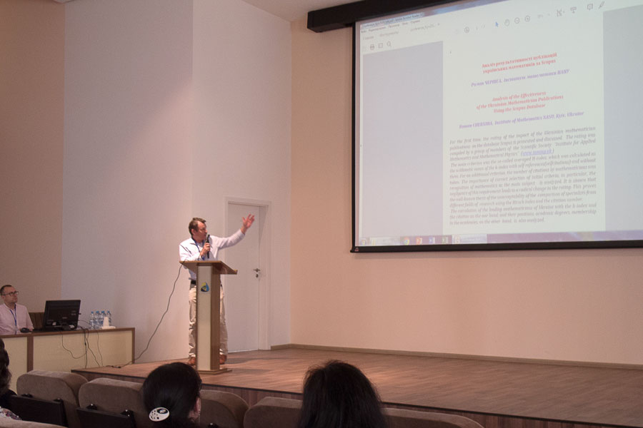 Роман Черніга (Інститут математики НАН України) представив рейтинг результативності публікацій українських математиків за наукометричною базою Scopus на основі усередненого h-індекса, який обраховується як середнє арифметичне h-індекса з урахуванням посилань на власні роботи та без нього.