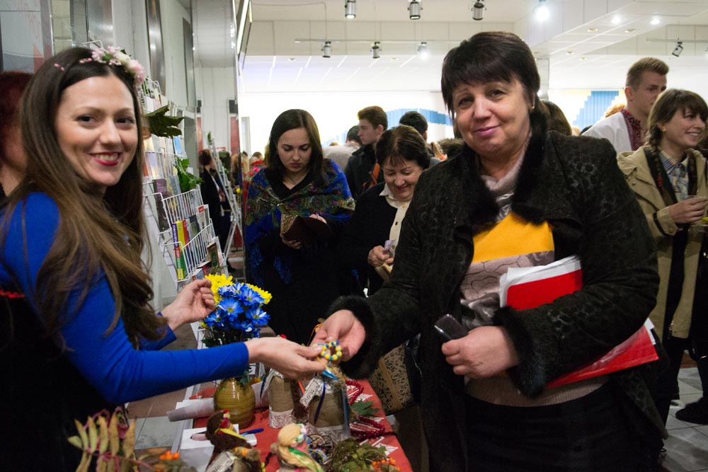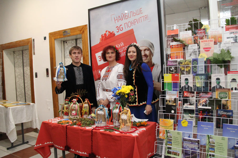 Власні столи виставили співробітники Наукової бібліотеки КНУКіМ. Кожен з елементів виставки знайшов своє тематичне наповнення. На столі, що знаходився неподалік бібліотеки розмістили обереги (ляльки-мотанки), поруч стенд з літературою для участі в акції, далі випічка та інша смакота. До заходу готувались ретельно та зі смаком.