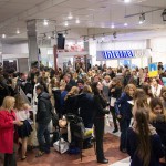 О 12:00 в холі головного корпусу КНУКіМ ніде було пройти. Групи людей переміщались від столу до столу, купуючи різну продукцію, яку організатори підготували до благодійної ярмарки. На виставкових столах розташували вироби hand – made, прикраси, деталі інтер’єру, книжки та різні смаколики: випічку, кекси, чебуреки, пиріжки, торти, шарлотку і т.п.