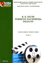 В. Б. Кісін: режисер, науковець, педагог : колект. монографія. Т. 4 / Київ. нац. ун-т культури і мистецтв, ф-т кіно і телебачення ; наук. ред.: О. В. Безручко ; упоряд. С. І. Степаненко. Київ : Вид. центр КНУКіМ, 2019. 193 с.