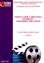 Ґенеза ідей і динаміка розвитку екранних мистецтв : колект. монографія. Т. 9 / Київ. нац. ун-т культури і мистецтв, ф-т кіно і телебачення ; наук. ред. О. В. Безручко ; рецензенти: В. Г. Горпенко, О. Г. Левченко, Г. П. Чміль. Київ : Вид. центр КНУКіМ, 2021. 208 с. (Нова енергія професіоналів) (Світ кіно і ТБ).