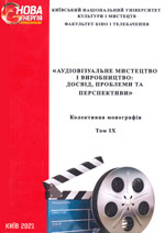 Аудіовізуальне мистецтво і виробництво: досвід, проблеми та перспективи : колект. монографія. Т. 9 / Київ. нац. ун-т культури і мистецтв, ф-т кіно і телебачення ; наук. ред. О. В. Безручко ; рецензенти: В. Г. Горпенко, О. Г. Левченко, О. С. Поліщук. Київ : Вид. центр КНУКіМ, 2021. 205 с.