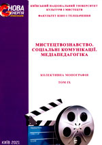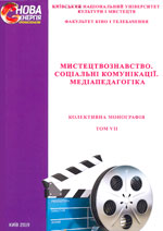 Мистецтвознавство. Соціальні комунікації. Медіапедагогіка : колект. монографія. Т. 8 / Київ. нац. ун-т культури і мистецтв, ф-т кіно і телебачення ; наук. ред. О. В. Безручко. Київ : Вид. центр КНУКіМ, 2019. 207 с. (Нова енергія професіоналів)