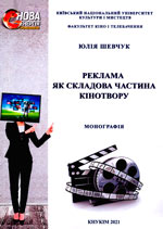 Шевчук Ю. Реклама як складова частина кінотвору : монографія / Київ. нац. ун-т культури і мистецтв, ф-т кіно і телебачення. Київ : Вид. центр КНУКіМ, 2021. 195 с.: іл., табл. (Нова енергія професіоналів) (Світ кіно і ТБ).