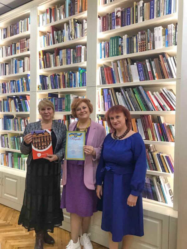 З нагоди ювілею бібліотеки КНУКіМ, завідувачка бібліотеки коледжу Мальвіна Найдовська вручила Подяку за співпрацю заступнику директора бібліотеки Валентині Мамедовій.