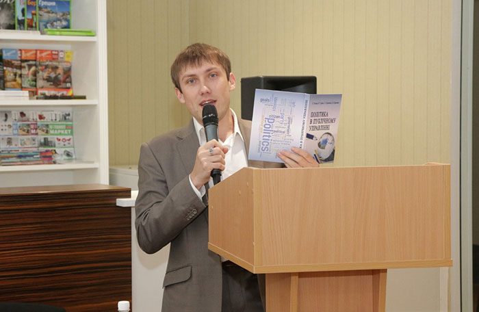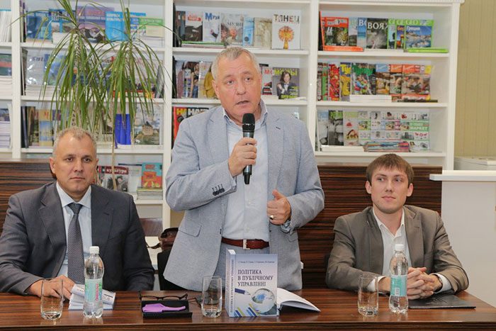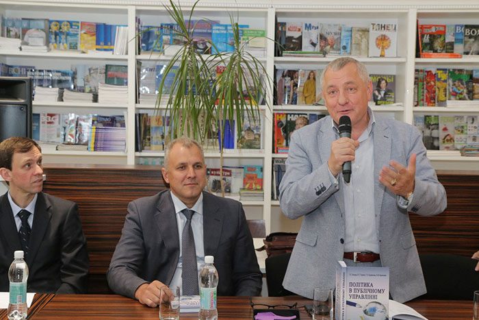 Отже, 14 червня в читальній залі бібліотеки зібрались представники наукової еліти України, студенти-бакалаври і спеціалісти на радісну подію – знайомство з новим навчальним посібником «Політика в публічному управлінні». Наразі він є дуже актуальним, адже в Україні на вищому державному рівні визнано потреби створення нової системи публічного управління. У Стратегії сталого розвитку «Україна 2020» серед першочергових напрямків визначено децентралізацію та реформу державного управління.