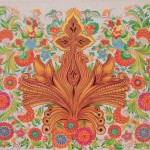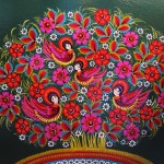 Maryna Sarkisyan was called «The Ukrainian soul with Armenian heart» in one of publications about the artist work and this, indeed, vividly describes the crafts woman creative heritage. Petrykivka painting for Maryna Surenivna is the Ukrainian soul merging with Armenian roots of her origin, as she was born in Ukraine and this is her home land, and Khachkary1 is a symbol and heart of Armenia. So, they intertwine into the precious treasure in the artist heart.