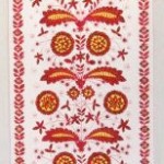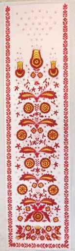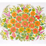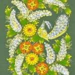 Olena Yarmolyuk is soft and poetic person according to her spiritual fullness composition. Hence the special melodious lyricism of her colored ornamental plexuses, strange, exquisitely sophisticated works: «Vesnyanyi podyh» («Spring Breath») (2014), «Veselkovyi buket» («Rainbow Bouquet») (2014), «Bilym tsvitom kalyna tsvite» («Guelder Rose blooms with white blossom») (2013).