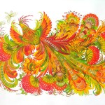 Draws on paper, paints krashanky (Easter eggs), boxes and authors` paper towels. In 2012 presented 12 «Petrykivka» towels (paper, width –40 cm, length – 1 m 50 cm) at the exhibition in Dnipropetrovsk Art Museum. Plans to embody them on canvas by means of embroidery.