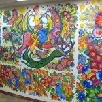 Embodies Petrykivka on various materials – paper, wood, metal, paints interiors and exteriors of buildings.