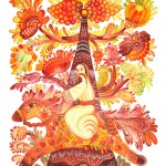 Creates paintings, differing by decorative saturation of colors and ornamental compositions. Her works are a direct response to the rare according to richness and generosity nature, so they attract the attention by rich handling of floral ligature, juicy bright flavor, in which red, crimson, green, orange paints dominate. Their rich tonal sheet music from cold violet-lilac to “hot” ocher-orange ones seems to radiate a joy, creates a sense of celebration.