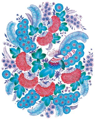 Works in genres of the Ukrainian decorative painting, book and easel graphics, vytynanka (Slavic version of the art form of paper cutting, popular in Belarus, Poland, and Ukraine), batik, clothes painting, graphic design. Conducts master classes for adults and children. Olesya Vakulenko offers her own, original vision of modern Petrykivka painting development, which she shows in her works.