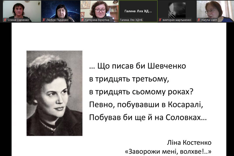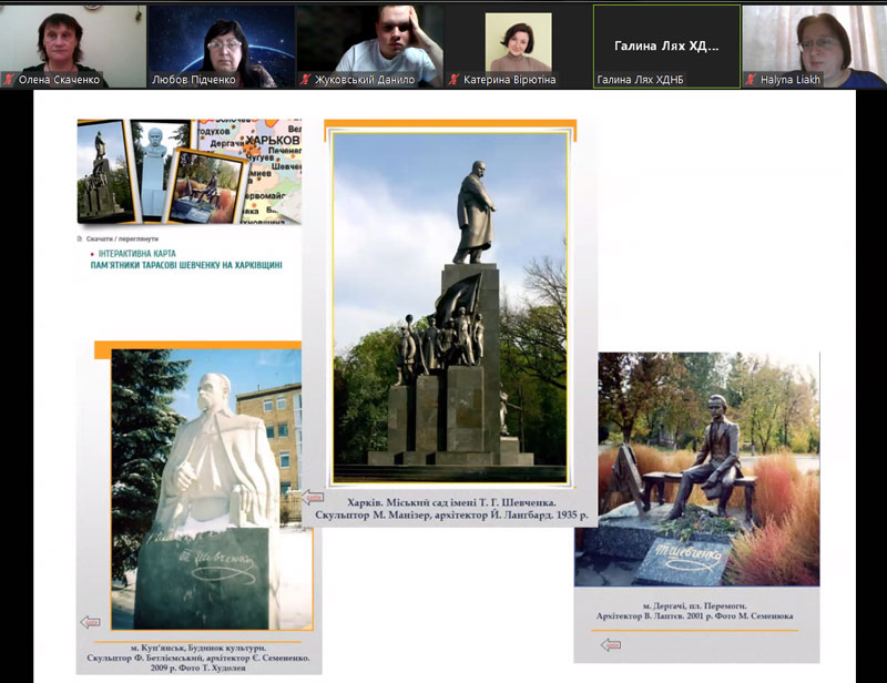 Програма онлайн заходу була насичена різними активностями. Так, за допомогою віртуальної екскурсії «Про Кобзаря в діджитал форматі», яку провела Галина Лях, провідна бібліотекарка відділу «Україніка» імені Т. Шевченка ХДНБ ім. В. Г. Короленка, студенти дізналися про маловідомі факти із життя і творчості Кобзаря, побачили меморіальні місця, пов’язані із вшануванням його пам’яті.