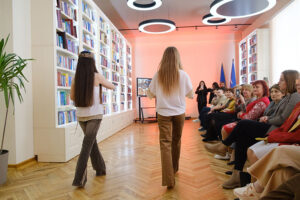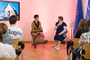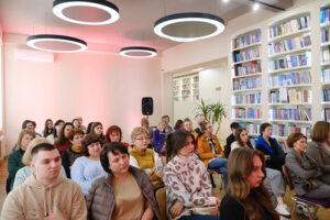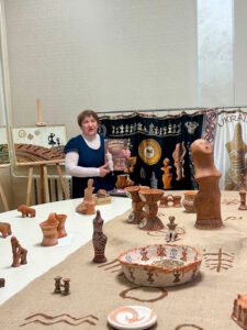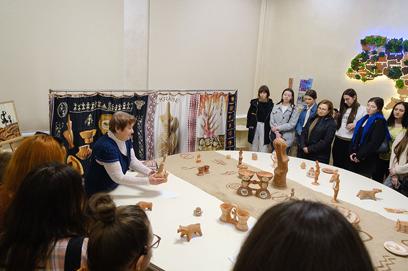 Так, у просторі для подій та зустрічей пройшло інтерв’ю із Людмилою Смоляковою, народною майстринею України з реконструкції кераміки Трипільської цивілізації, членкинею Національної спілки майстрів Народного мистецтва України, організаторкою та учасницею міжнародних проєктів (модераторка зустрічі – доцентка Наталя Удріс-Бородавко).