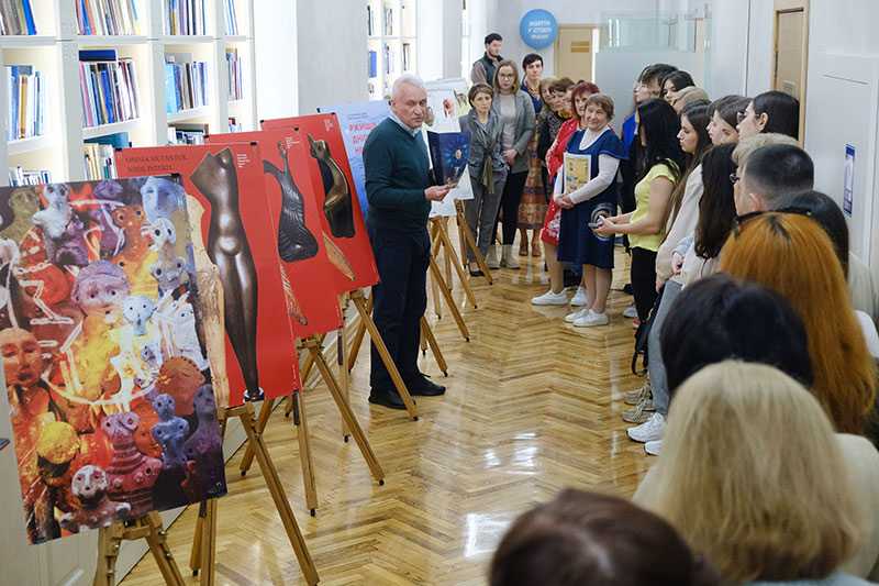 У головному виставковому просторі бібліотеки демонструвалася експозиція творчих проєктів студентів і викладачів кафедри графічного дизайну Факультету дизайну і реклами (куратори – доцентка Оксана Чуєва, доцент Андрій Будник).