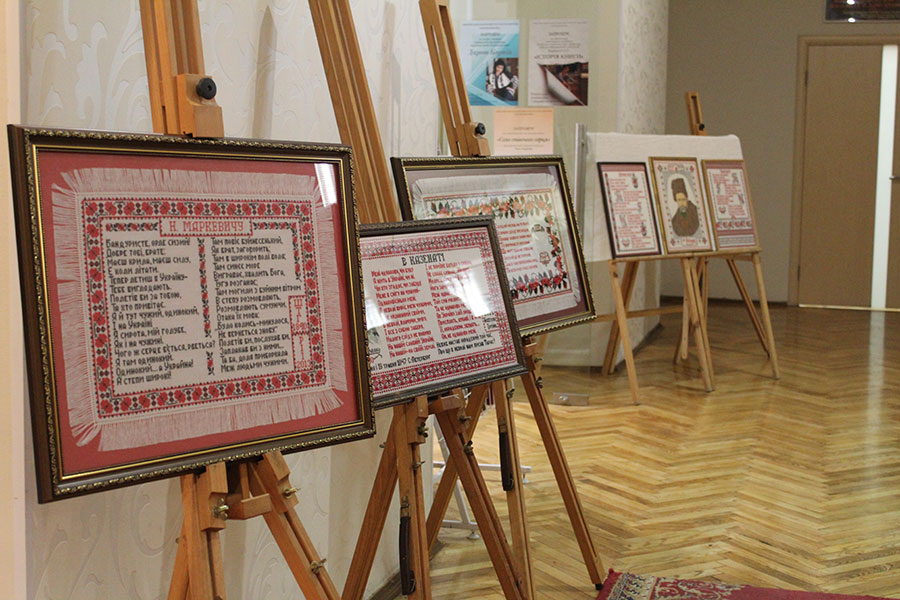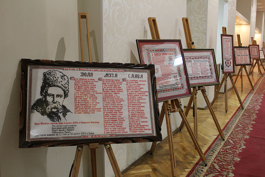 Не пустувала і Art-галерея бібліотеки, де з 23 квітня діяла виставка «Вишитий Кобзар» – спільний проект відомого в Україні майстра вишивки Івана Рябчука, музеєзнавців та краєзнавців з м. Ірпінь, що на Київщині. Кожна картина – то вірш із Шевченкового «Кобзаря». Водночас це не просто текст, а змістовний настрій, який створено за допомогою квіткового орнаменту, візерунків, що народжені в душі митця поетичним словом. Роздуми, викликані віршами Шевченка лягли на картини коментарями автора, або епіграфами (вишиті вони чорною ниткою на відміну від віршів Шевченка, які «прописані» червоною). Вишита шевченкіана Івана Рябчука налічує близько 40 полотен, а загальна кількість його робіт – понад сто.