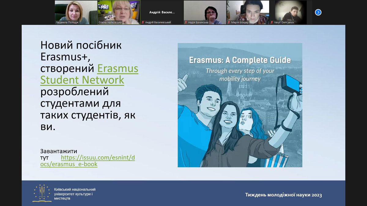 Наступного дня Олена Антонівна Чайковська, декан факультету дистанційної освіти, кандидатка педагогічних наук, доцента, ознайомила здобувачів вищої освіти з академічною мобільністю та з можливостями, які надає програма Erasmus+.