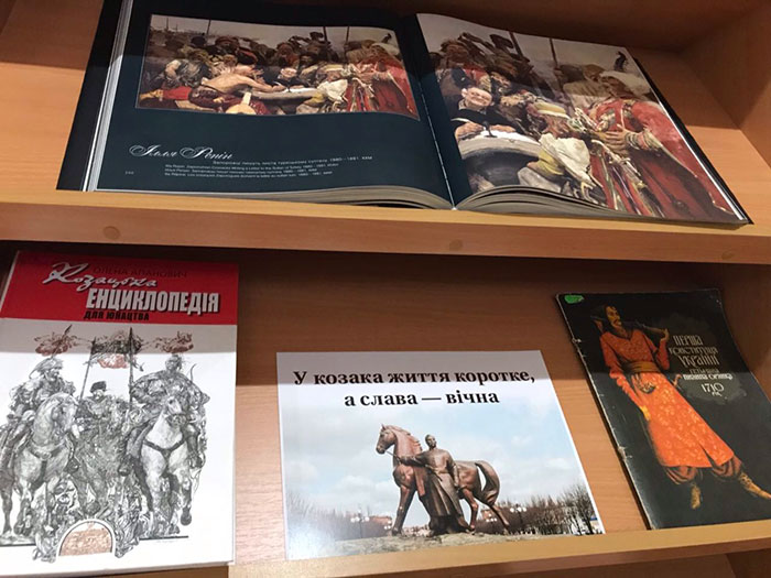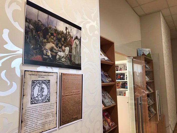 У виставковій залі бібліотеки представлена фоторепродукція картини Іллі Рєпіна «Запорожці пишуть листа турецькому султану», фото оригіналу «Листа Турецькому Султану Махаммаду IV» та інформація щодо історії Герба Війська Запорозького Низового 1622 року.