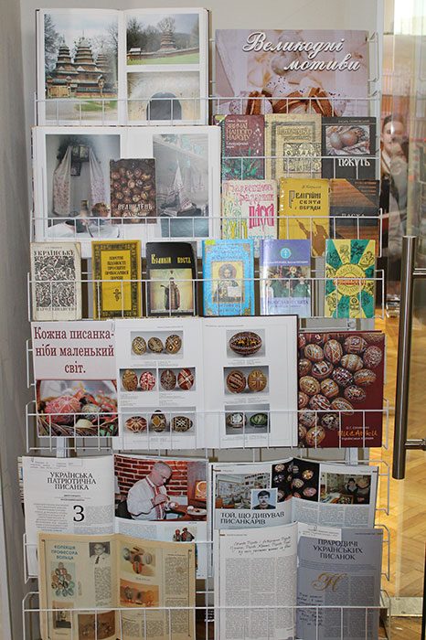 Традиція розмальовувати писанки є практично у всіх народів. Яйце завжди символізувало нове життя. Але неодмінно стається так, що старе повинне дати місце новому. Тому писанку символічно розбивають. Про історію та технологію писанкарства можна дізнатися з книжок представлених на виставці: