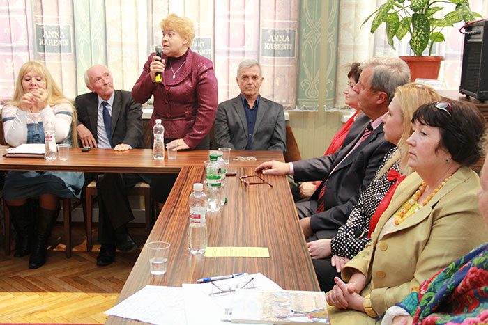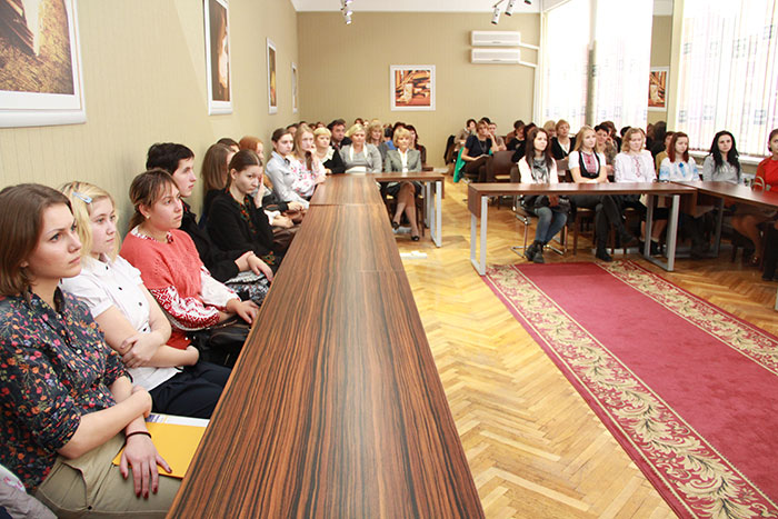 Першокурсники Кафедри книгознавства і бібліотекознавства Київського національного університету культури і мистецтв зустрілися з відомими випускниками своєї alma-mater. Зустріч проходила в читальній залі в рамках відзначення 50-річчя Наукової бібліотеки КНУКіМ.